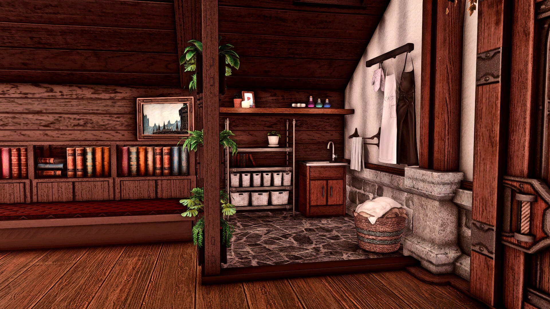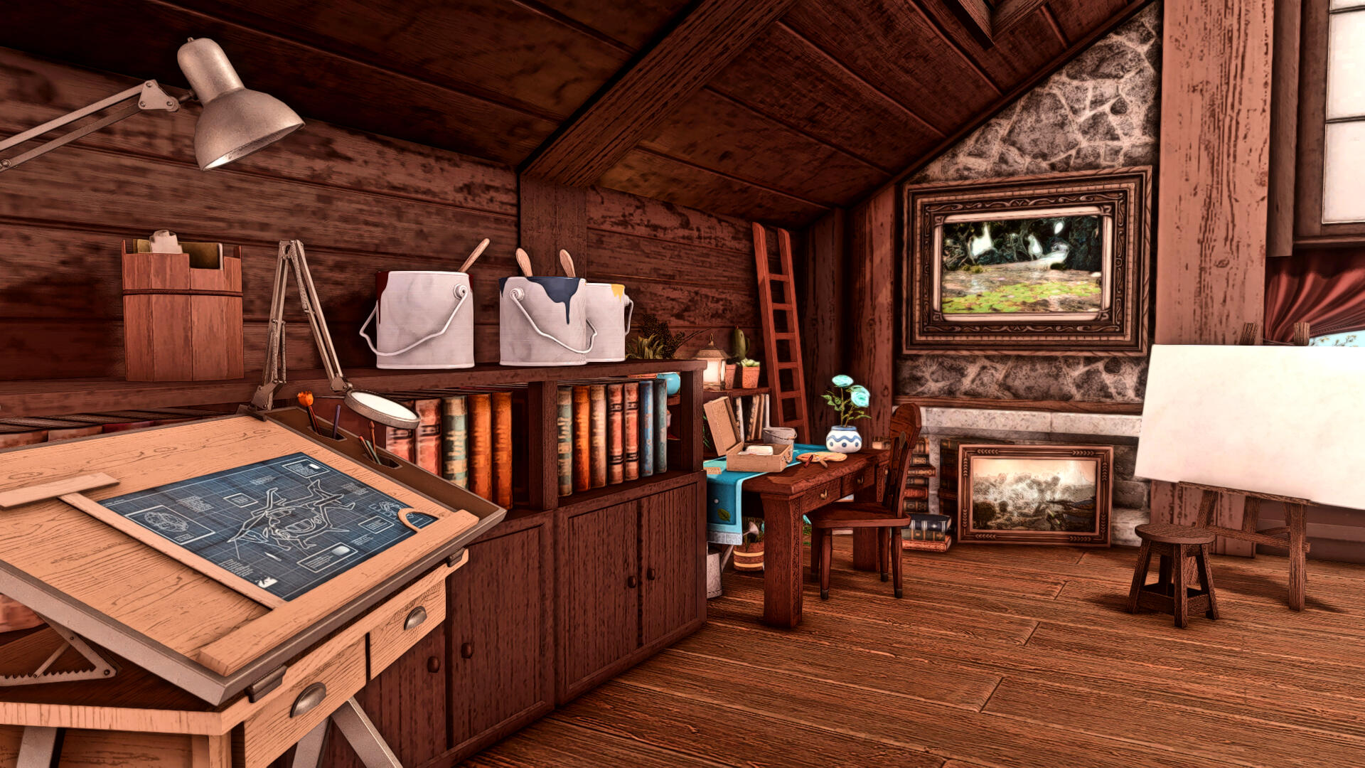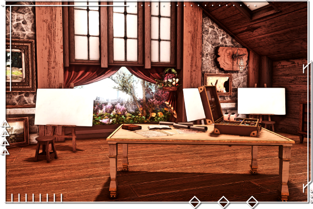 The attic is another room of the extensive manor that has been repurposed during the restoration, primarily due to the head culinarian's sudden interest in painting. (Surely, her mise en place will improve if she studies art itself!) When Cilvionne isn't actively sabotaging her latest canvas, the refurbished artisan studio serves as a space for others to share in the creative process together.
