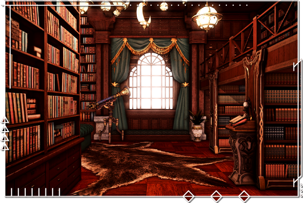 An existing feature left intact from the original manor, the Grand Library houses a surplus of texts and other literature, both academic and otherwise. Many collections featuring various Ishgardian novelists, historians, playwrights, and poets can be found on the abundant, towering shelves, as well as a wide selection of Halonic doctrine, including a rare edition of the Seventy-Two Articles of Halonic Polity.