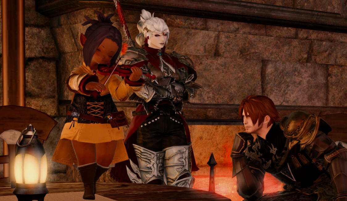Some curses can be broken, though. Shriβke would return after those three years, his rank restored and the manor still in his name, but with little idea of what to do with the latter. It was a house filled with faded memories of a family he had never known, other than their last surviving daughter. The thought of building it back from its ruins, especially alone, was daunting. Perhaps that was one of the myriad reasons why he was so quick to leave for another warfront when the Eorzean Alliance answered Bozjaβs call for aid, and the dilapidated manor was made to wait for salvation once more.It would not wait for long. When Shriβke returned from Bozja not a summer later, he was not alone, accompanied by an ally from the Southern Front who had no where else to go. Alas, the task of restoring the crumbling estate remained intimidating, given that the two had little experience in matters of renovationβbut following a dangerous leve mission Shriβke led on behalf of the Order, he and his comrade were joined by a Gridanian man with more than enough experience in carpentry and engineering to make up for their lack.As they worked together to restore the estate, Shriβke found himself envisioning a purpose for these old halls: that the manor of House Triedame might serve the adventurers setting foot within Ishgardβs walls following the end of the Dragonsong War. Outsidersβlike him, like Faerval, like Sawyerβwho had come to Ishgard to find a home. A tavern, maybe, that could be a place of warmth for those seeking camaraderie, one that would also give them an opportunity to cross blades, as adventurers are wont to do.Shriβke committed to the idea, and with it came hope that he would be able to fulfill his mentorβs final wish, for although he had never known Ser GwenaΓ«lleβs family, perhaps House Triedame would not be left without one for much longer.