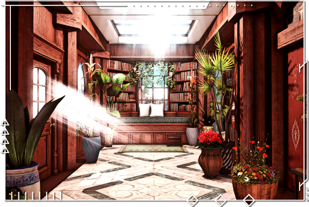 Blessed with a series of skylights and wide windows that overlook the sweeping expanse of Empyreum, this particular corridor offered an opportunity during the renovation: the ability to create a warmer, brighter place of seclusion, one that could foster the growth of a myriad of flowers and plants to support the culinary and medicinal needs of House Triedame. These days, Eddard is often found tending to the plants in their late caretaker's stead.
